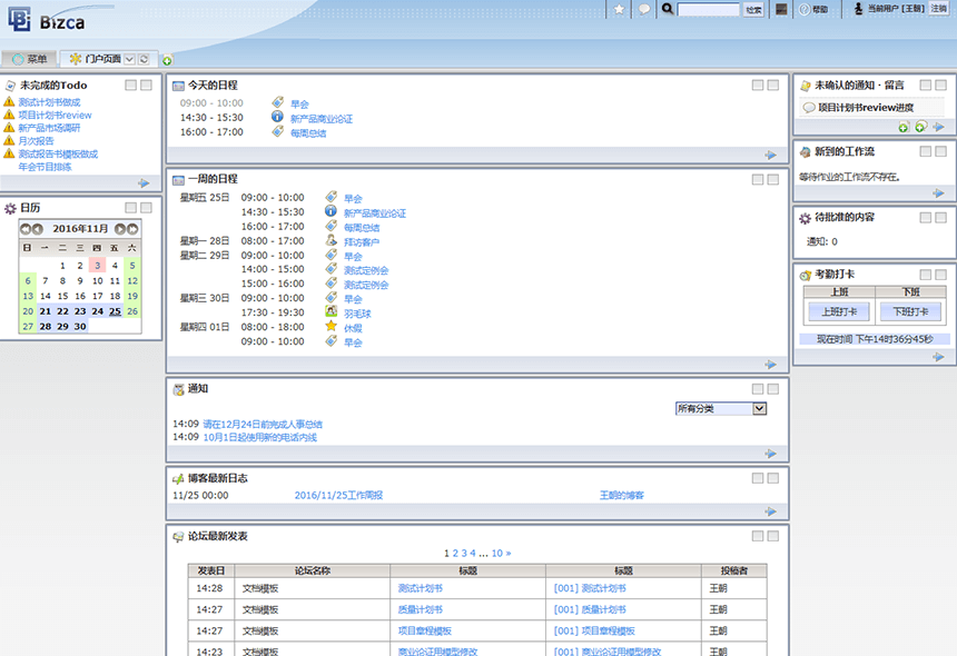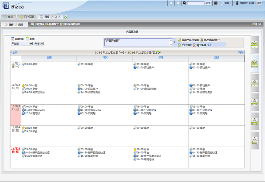 「Bizca」是(shì)一(yī)款管理(lǐ)會(huì)社內(nèi)員(yuán)工(gōng±)日(rì)程、待辦事(shì)項、工(gōng)作(zuò)流和(hé)出勤的(de)社內(nèi)OA系統,采用(yòng)租用(yòng)±式服務。同時(shí)支持中文(wén)和(hé)日(rì)語。